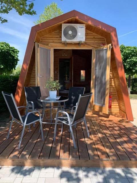 Chalet/Holzhaus mit kleiner Terrasse auf 100qm-Parzelle